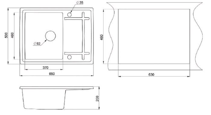Код товара: 778123 Рейтинг: 97 17| -148,56 врезная на столешницу, гранит, фактура: матовая, размеры: 65x50 см, глубина чаши: 20 см, в шкаф шириной от 50 см