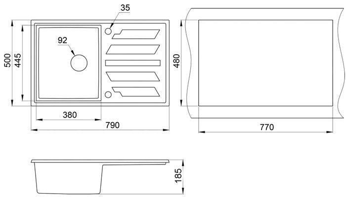 Код товара: 938868 Рейтинг: 100 17| -156,15 врезная на столешницу, гранит, фактура: матовая, размеры: 79x50 см, глубина чаши: 18.5 см, в шкаф шириной от 50 см