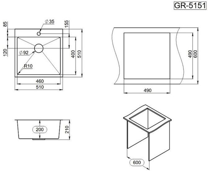 Код товара: 4418269 Рейтинг: 160 17| -517,66 врезная на столешницу, нержавеющая сталь, фактура: матовая, размеры: 51x51 см, глубина чаши: 20 см, в шкаф шириной от 60 см