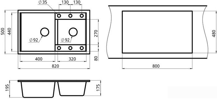 Код товара: 3978996 Рейтинг: 109 17| -94,03 врезная на столешницу, искусственный камень, размеры: 82x50 см, глубина чаши: 19.5 см, в шкаф шириной от 80 см