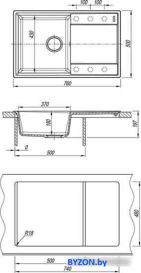 Код товара: 3910010 Рейтинг: 110 5| врезная на столешницу, искусственный камень, фактура: матовая, размеры: 76x50 см, глубина чаши: 18 см
