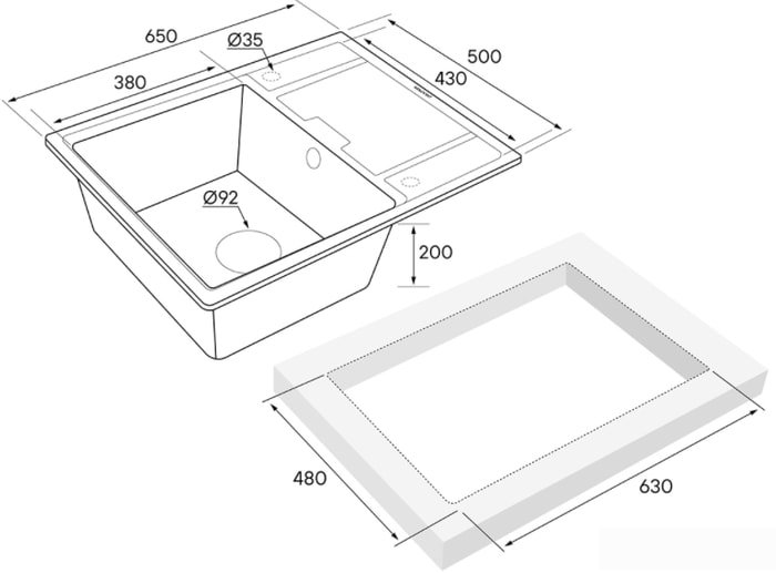 Код товара: 2357819 Рейтинг: 155 1| врезная на столешницу, искусственный камень, размеры: 78x50 см, глубина чаши: 20 см, в шкаф шириной от 50 см