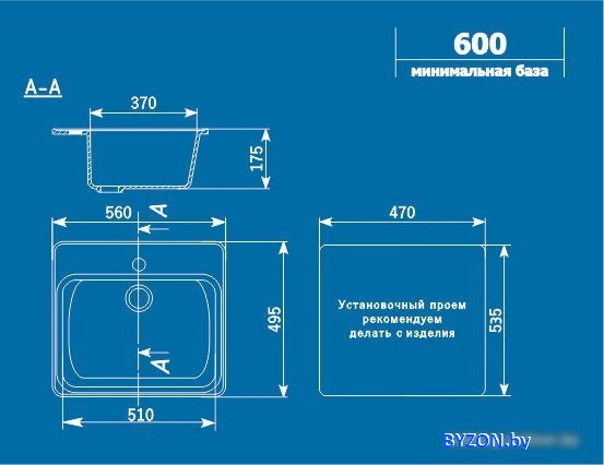 Код товара: 1083896 Рейтинг: 77 11| -59,42 врезная на столешницу, искусственный камень, размеры: 56x49.5 см, глубина чаши: 17.5 см, в шкаф шириной от 60 см
