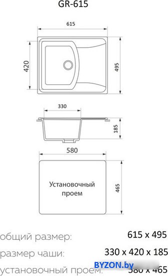 Кухонная мойка Granrus GR-615 (черный) - купить в Минске