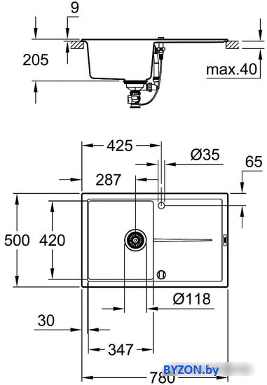 Кухонная мойка Grohe K400 50-C 78/50 1.0 31639AP0 (черный гранит) - купить в Минске