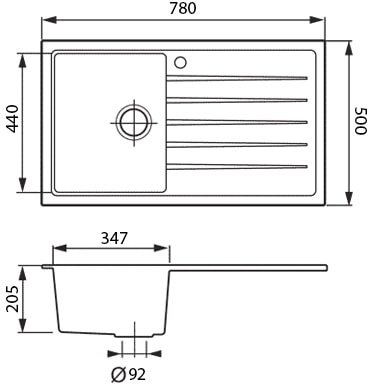 Код товара: 1734199 Рейтинг: 177 13| врезная на столешницу, искусственный камень, размеры: 78x50 см, глубина чаши: 20.5 см, в шкаф шириной от 50 см