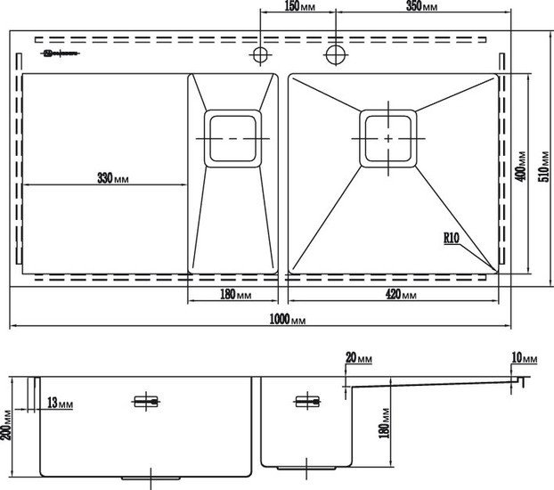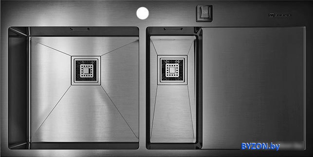 Код товара: 801708 Рейтинг: 864 8| врезная на столешницу, нержавеющая сталь, фактура: матовая/полированная, размеры: 100x51 см, глубина чаши: 20 см, в шкаф шириной от 90 см, клапан-автомат