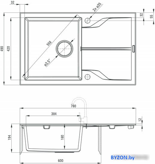 Код товара: 1951761 Рейтинг: 117 10| -57,59 врезная на столешницу, искусственный камень, размеры: 78x49 см, глубина чаши: 18 см, в шкаф шириной от 60 см, клапан-автомат