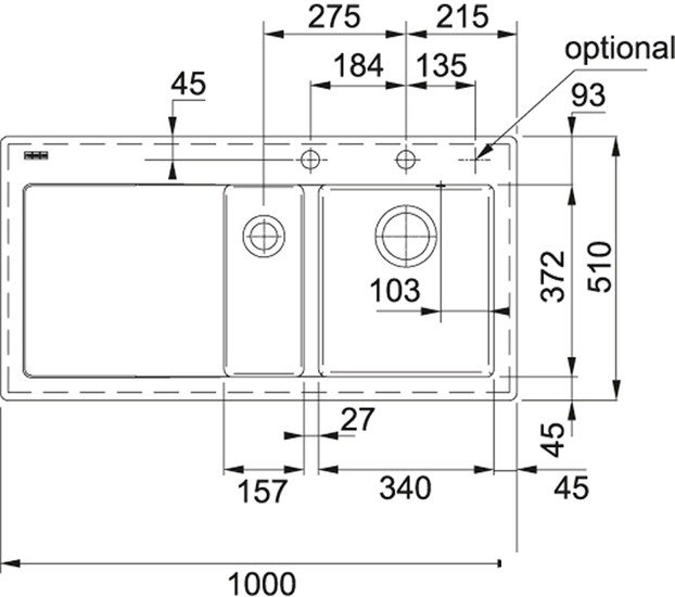 Код товара: 1243642 Рейтинг: 843 10| врезная на столешницу, керамика, размеры: 100x51 см, глубина чаши: 19 см, в шкаф шириной от 60 см, клапан-автомат