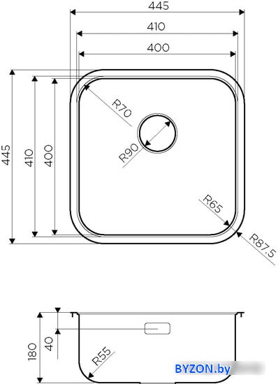 Код товара: 1612259 Рейтинг: 110 1| врезная на столешницу/врезная под столешницу/врезная вровень со столешницей, нержавеющая сталь, фактура: матовая, размеры: 44.5x44.5 см, глубина чаши: 18 см, в шкаф шириной от 45 см