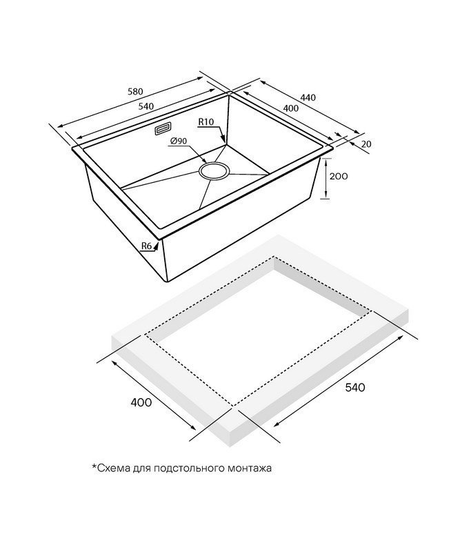 Код товара: 4623395 Рейтинг: 327 1| нержавеющая сталь, размеры: 44x58 см, глубина чаши: 20 см, в шкаф шириной от 60 см