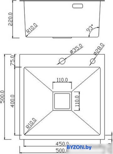 Код товара: 4045167 Рейтинг: 116 1| врезная на столешницу, нержавеющая сталь, фактура: матовая, размеры: 50x50 см, глубина чаши: 22 см