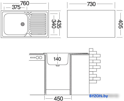 | Информация | Кухонная мойка из нержавеющей стали, врезная, с большой чашей и широким крылом.Поставляется в картонной коробке. |