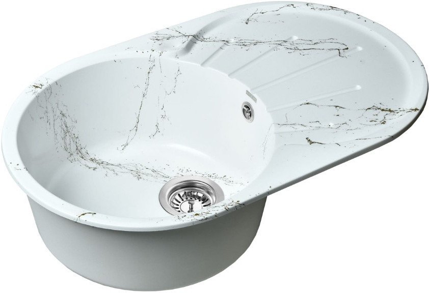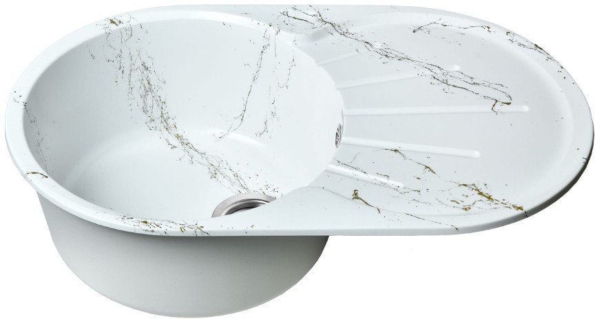 | Информация | - Кухонная мойка Wisent WA02-13 - это стильное и функциональное решение для вашей кухни, которое добавит изысканности интерьеру. - Мойки доступны в различных оттенках, имитирующих различные виды мрамора, от классического белого до более экзотических цветов. - Важно! Каждая прожилка создана индивидуально, делая каждую мойку уникальной и неповторимой. - Элегантная овальная мойка с крылом и круглой чашей позволит разместить большое количество грязной и чистой посуды. - Раковина изготовлена из композитного материала «Искусственный гранит», что обеспечивает максимальную прочность и долговечность. - Кухонная мойка обладает устойчивостью к термоудару, не впитывает пищевые красители, имеет защиту от микро-царапин, ультрафиолета, грибковых поражений и запахов. - Размер мойки: 735х455х21.5 (± 5 мм), высота чаши: 195 мм, ? чаши: 400 мм. |