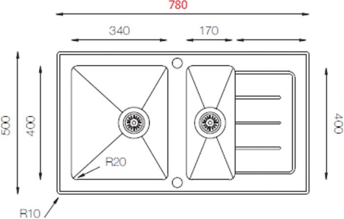 Код товара: 1550718 Рейтинг: 123 1| -34,37 врезная на столешницу, нержавеющая сталь, фактура: матовая, размеры: 78x50 см