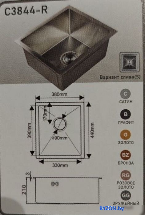 Кухонная мойка MARRBAXX C3844-R (стальной/нержавеющая сталь) - купить в Минске