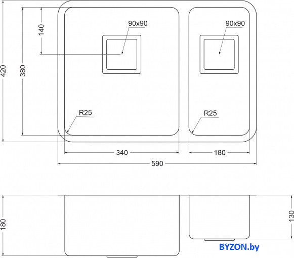Код товара: 4850308 Рейтинг: 283 5| -228,27 врезная на столешницу/врезная под столешницу, нержавеющая сталь, фактура: сатин, размеры: 59x42 см, глубина чаши: 18 см, в шкаф шириной от 80 см