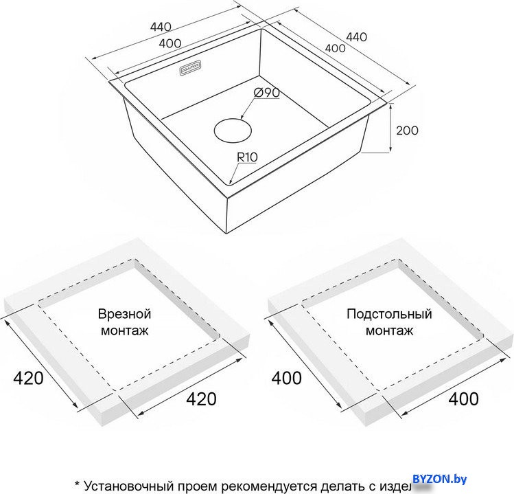 | Способ установки | врезная на столешницу, врезная под столешницу |