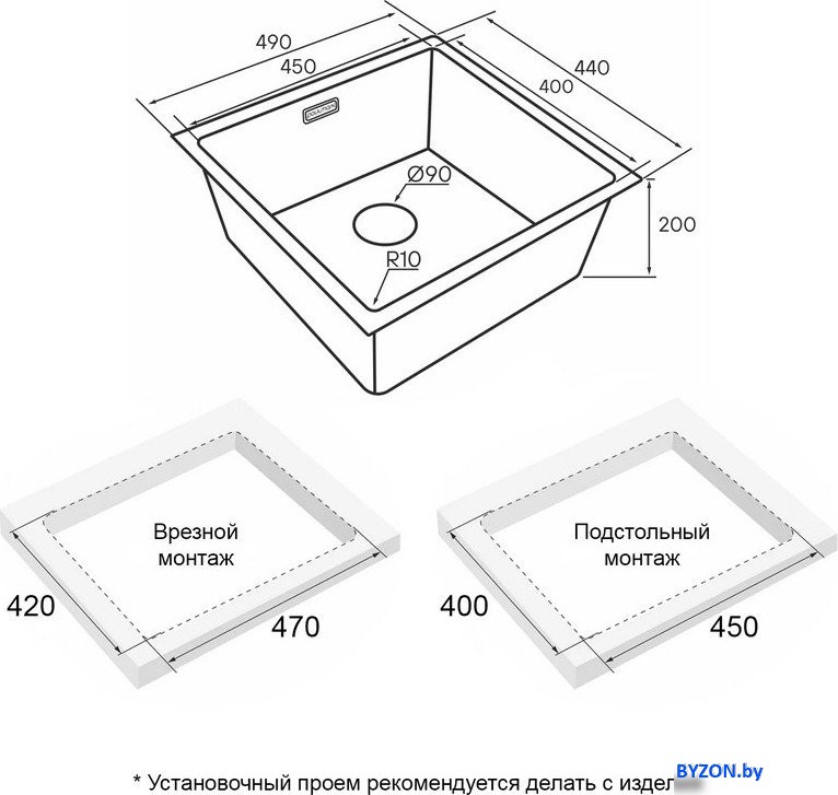 | Способ установки | врезная на столешницу, врезная под столешницу |