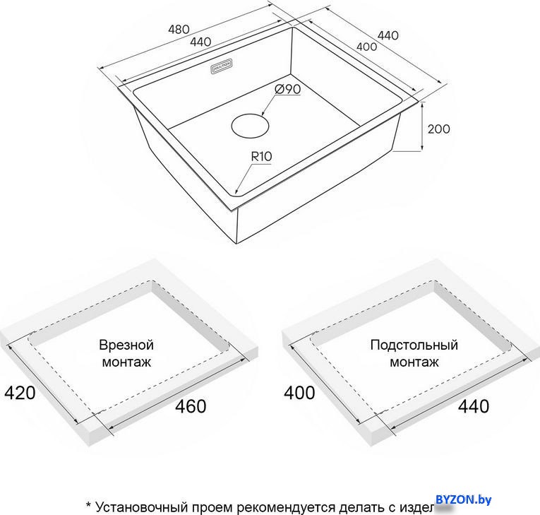 Код товара: 4781066 Рейтинг: 331 1| врезная под столешницу/врезная на столешницу/врезная вровень со столешницей, нержавеющая сталь, размеры: 44x48 см, глубина чаши: 20 см, в шкаф шириной от 50 см
