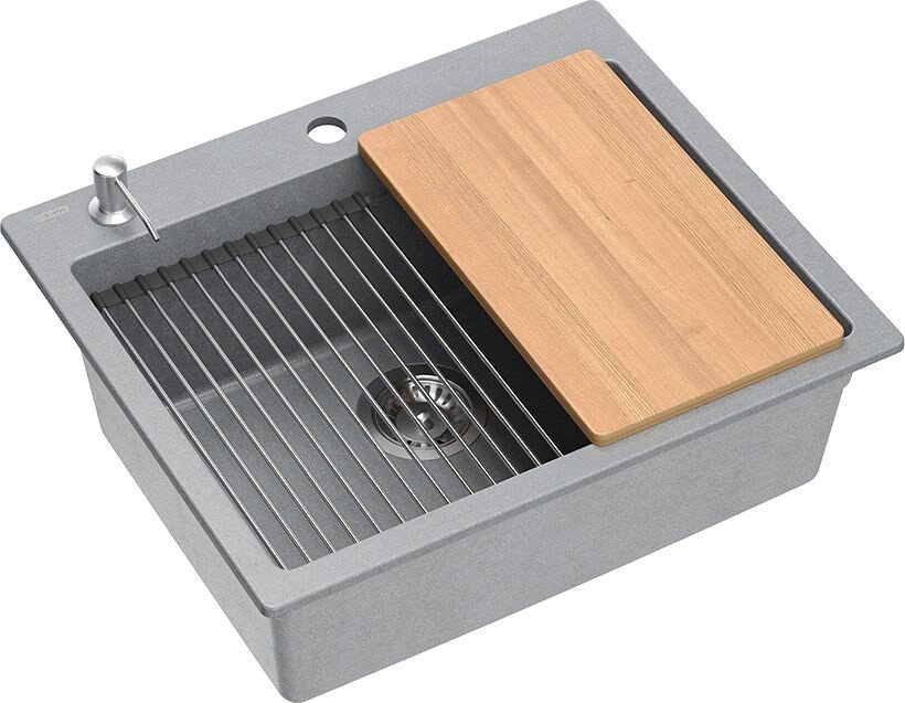 Код товара: 4937508 Рейтинг: 246 10| врезная под столешницу, гранит, фактура: матовая, размеры: 50x59.5 см, глубина чаши: 21.5 см, в шкаф шириной от 60 см