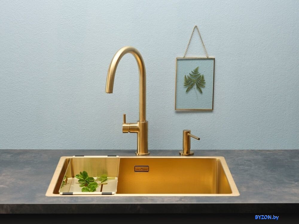 | Информация | - Мойка Reginox New York 50?40 (L) OKG Comfort Gold Flax - это современное решение для вашей кухни, выполненное из высококачественной нержавеющей стали AISI 304 с применением PVD покрытия, что обеспечивает не только надежность, но и стильный внешний вид в уникальном золотом цвете. - Благодаря интегрированному типу монтажа, мойка идеально сочетается с кухонной столешницей и подойдет для шкафов шириной от 60 см, а материал толщиной 0.9 мм гарантирует прочность и долговечность эксплуатации. - Основная чаша глубиной 20 см позволяет комфортно мыть даже крупногабаритную посуду, а матовая поверхность облегчает уход и сохраняет привлекательный внешний вид на долгое время. - Мойка оснащена переливом в основной чаше и звукопоглощающим покрытием, что значительно снижает уровень шума при использовании и делает процесс эксплуатации максимально удобным.  |