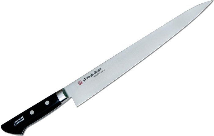 | Информация | Нож для тонкой нарезки, он же слайсер. Такой нож нужен на любой кухне. Для подготовки красивого праздничного стола он просто незаменим. Именно слайсер лучше всего подходит для красивой и аккуратной нарезки продуктов, особенно, ели речь о нежный продуктах, например, рыбе. Рукоять традиционной европейской формы отлично ложится в руку. Аккуратный больстер защищает руку от соскальзывания и дает дополнительную защиту лезвию. Таким ножом можно работать долго и много. Лезвие длиной из молибден-ванадиевой стали отлично держит заточку и не боится влаги, что для кухонного ножа очень важно. |