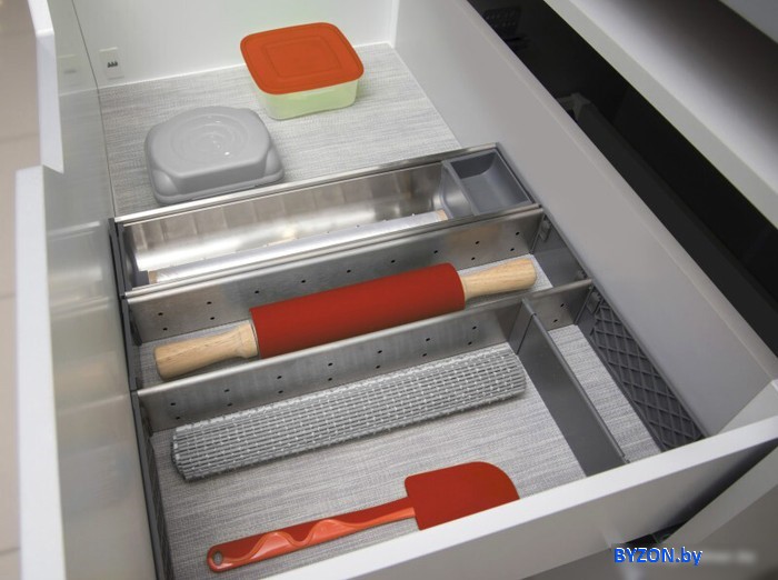 | Информация | Удобные поддоны-делители из нержавеющей стали для организации внутреннего пространства выдвижных ящиков. Поддоны состоят из нескольких ячеек прямоугольной формы разной ширины. Конфигурация поддонов позволяет обеспечить эргономичное хранение разнообразных предметов: габаритных кухонных принадлежностей (половников, лопаток, пресса для чеснока, закаточной машинки для банок и пр.), инструментов. Поддоны РС06 могут быть дополнением домашней и промышленной мебели, могут размещаться в ящиках как самостоятельно, так и в комплекте с другими поддонами, например с РС04 и РС05. Комбинации из поддонов РС04, РС05, РС06 будут особенно актуальны для широких мебельных модулей. |