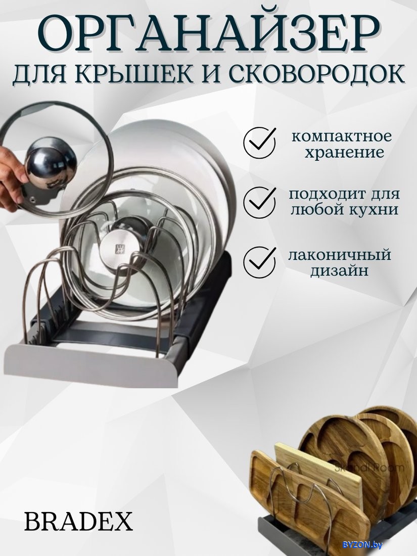 | Информация | - Большое преимущество этого держателя в том, что у него 7 секций и металлические разделители. Эта широкая опора подойдет для любой современной кухни. Такую подставку удобно размещать около мойки. Она поможет любой хозяйке навести порядок около раковины и вообще на кухне. - Благодаря универсальной стойке, можно не загромождать столешницу чистой посудой, а удобно сушить ее на специальной сушилке с поддоном. Разделитель подойдет для различных столовых приборов, разделочных досок, сковородок и тарелок. Красивая выдвижная подставка подойдет для квартиры, дома или дачи. - Серебристые направляющие в классическом стиле отлично впишутся в интерьер любой квартиры или дома. Такой предмет – это отличный маленький помощник на кухне, на ней можно сушить мокрую посуду после мытья и готовки. Большая раздвижная сушилка для посуды позволит держать все принадлежности для готовки в одном месте, эргономично организовать пространство на кухне. - Она подойдет не только для организации пространства на кухне, но и как декор разнообразит любой интерьер. Полку можно закрепить на столько высоко, как это будет удобно. Назначение такой полки может быть разное: ее можно использовать и как сушилку для мокрой посуды, и как систему хранения для чистых сковородок и крышек. - Кроме того, ее можно использовать как подставку под чистые тарелки. Улучшите свою кулинарную рутину, сделайте свою жизнь проще, предвосхитите ожидания наличием этой крутой подставки для крышек и сковородок.  |