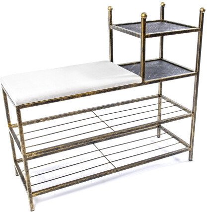 Код товара: 3663932 Рейтинг: 177 13| металл, обивка: ткань, полка для обуви, 74x30x80 см, цвет: золотистый/черный