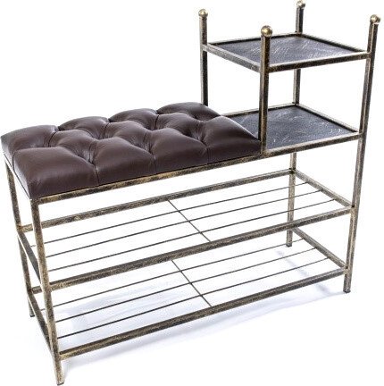 Код товара: 3663946 Рейтинг: 177 13| металл, обивка: ткань, полка для обуви, 74x30x80 см, цвет: золотистый/черный