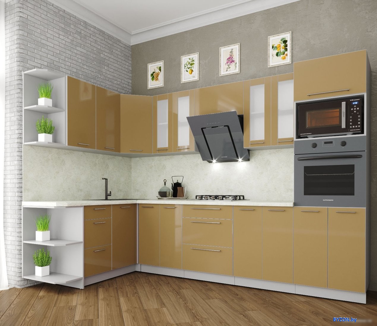 Готовая кухня Интерлиния Мила Пластик 1.68x3.0 левая (капучино/капучино глянец/опал светлый) - купить в Минске
