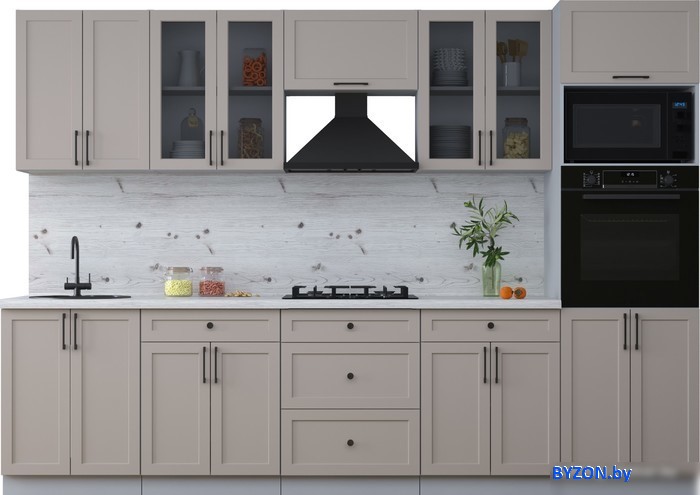 Код товара: 3822279 Рейтинг: 365 37| линейная, длина 300 см, ширина 60 см, каркас ЛДСП, фасад МДФ пленочный, установка мойки: врезная мойка, ширина шкафа под мойку 60 см