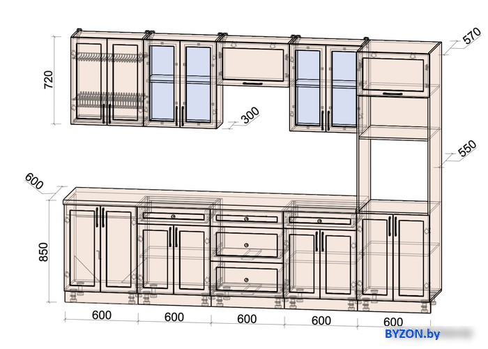 | Глубина верхних шкафов | 30 см |
