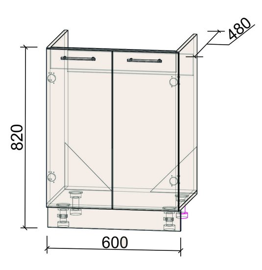 Шкаф напольный Интерлиния Компо НШ60м-2дв (дуб серый) - купить в Минске
