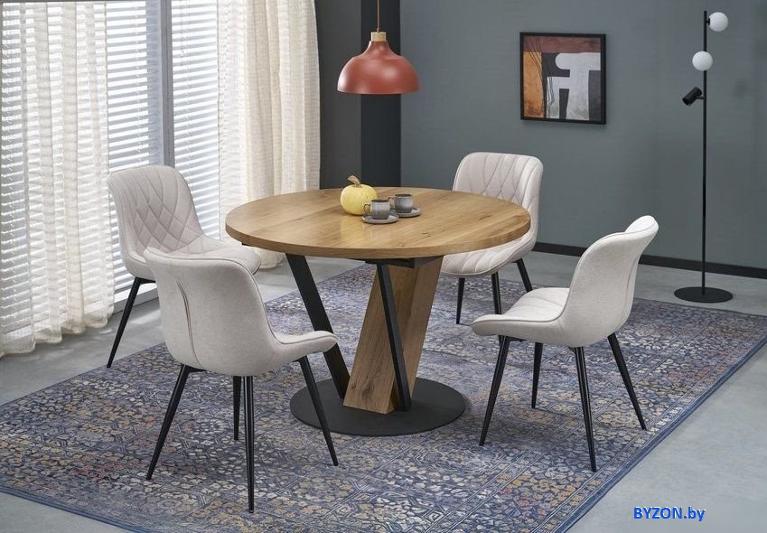 Кухонный стол Halmar Fanis okragly 120-160/120/78 (натуральный/черный) - купить в Минске