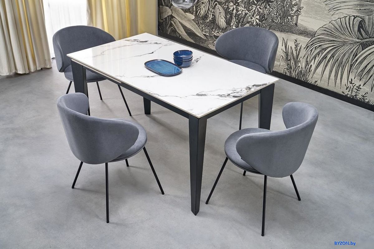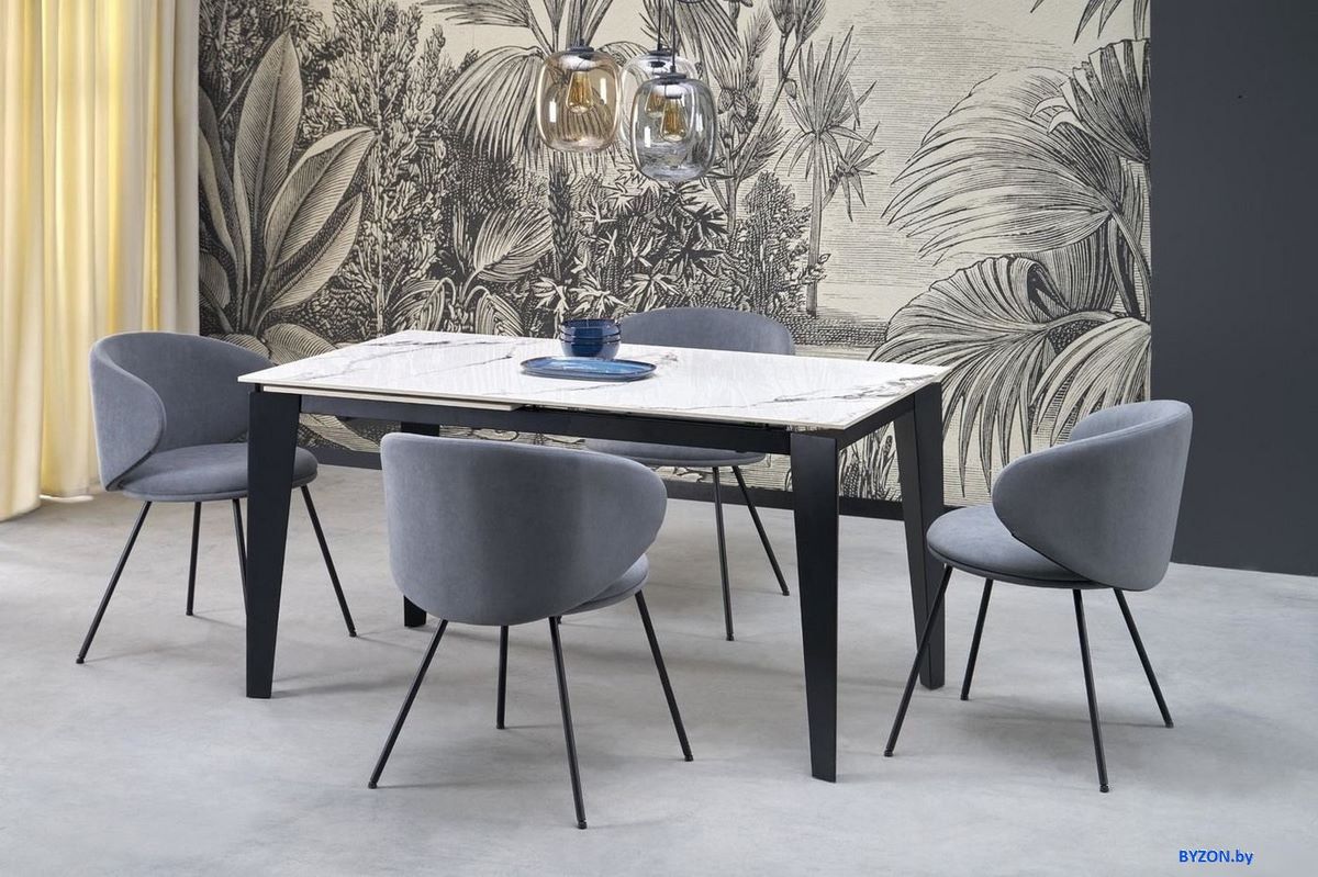 Кухонный стол Halmar Felix 141-201/81/76 (белый мрамор/черный) - купить в Минске
