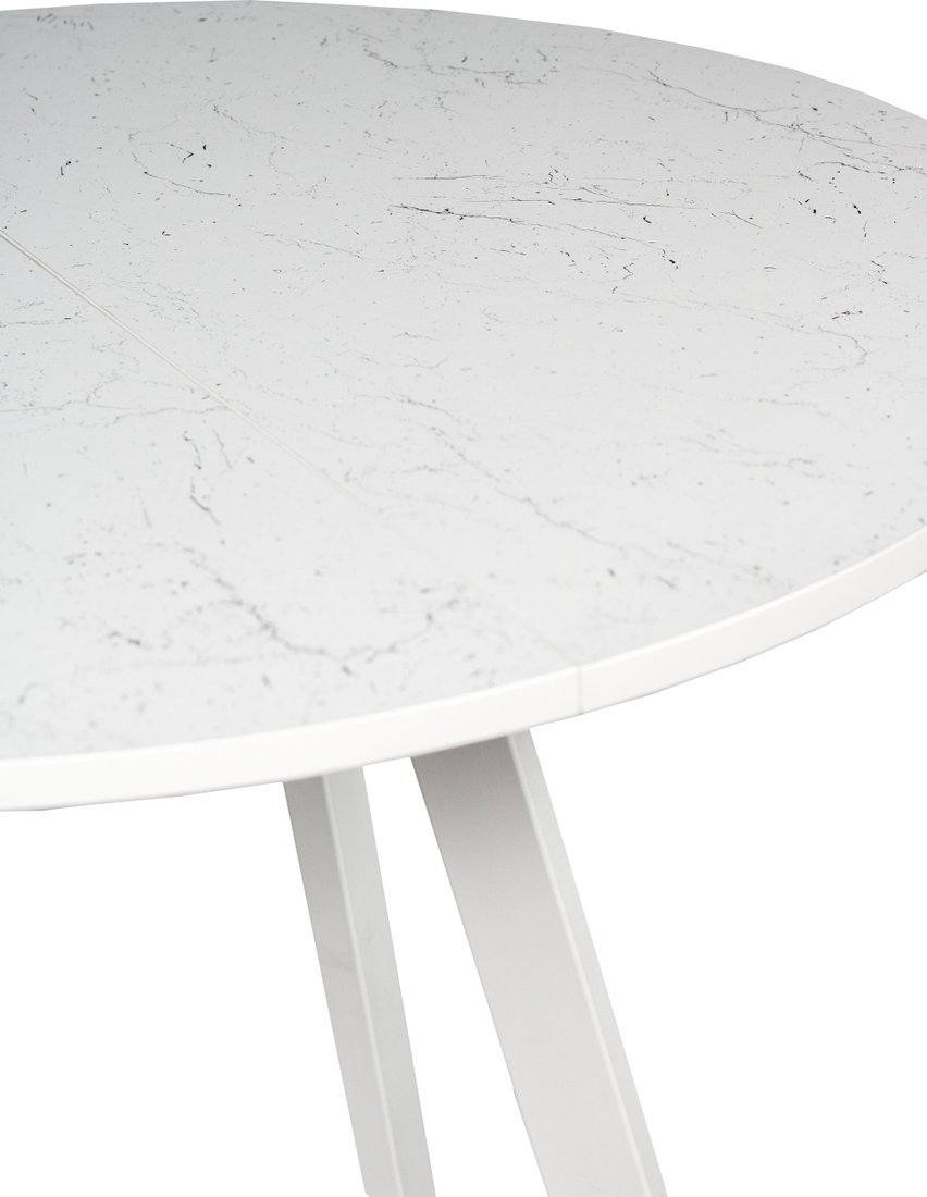 Код товара: 4837881 Рейтинг: 113 1| -26,03 круглая, раздвижной, 850x850 мм, высота 770 мм, в разложенном виде 1200x850x770 мм, материал: пластик (столешница), металл (опоры), белый