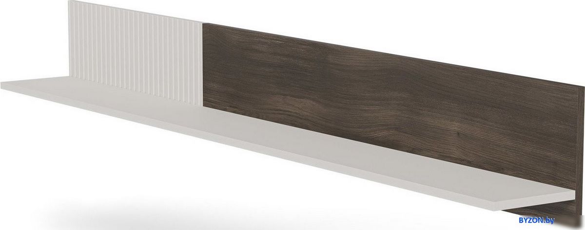 Код товара: 4896286 Рейтинг: 96 10| -32,62 навесная установка, открытая, 1 полка, материал: ЛДСП/МДФ, стиль: современный, цвет: коричневый/серый, длина 180 см, высота 25 см, глубина 20 см