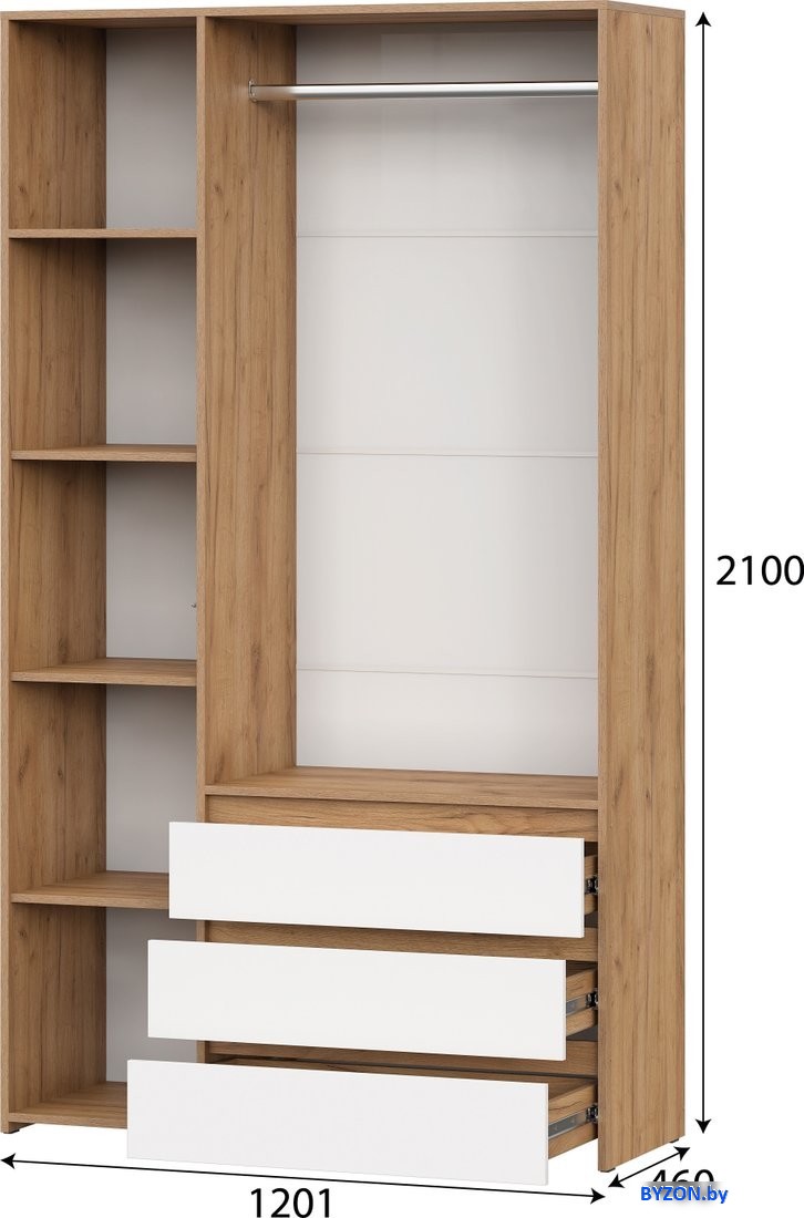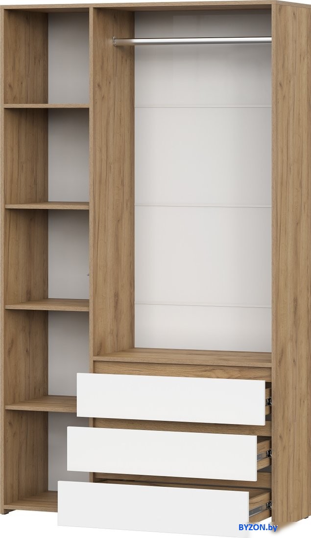 Шкаф распашной NN мебель МС Некст К комбинированный трехстворчатый (дуб золотой/белый) - купить в Минске