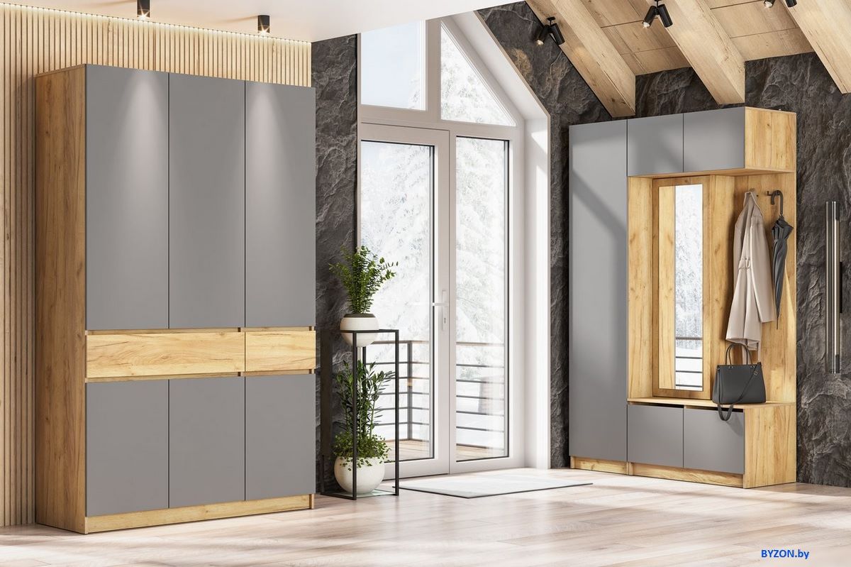 Вешалка для одежды NN мебель МС Авиньон К Серия 2 (дуб крафт золотой/графит серый, с зеркалом) - купить в Минске