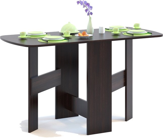 | Информация | Компактный стол-книжка прекрасно подойдет для малогабаритной квартиры. В сложенном состоянии ширина стола всего 26 см. В разложенном виде стол превращается в полноценный обеденный стол. Также вы можете разложить стол только наполовину. |