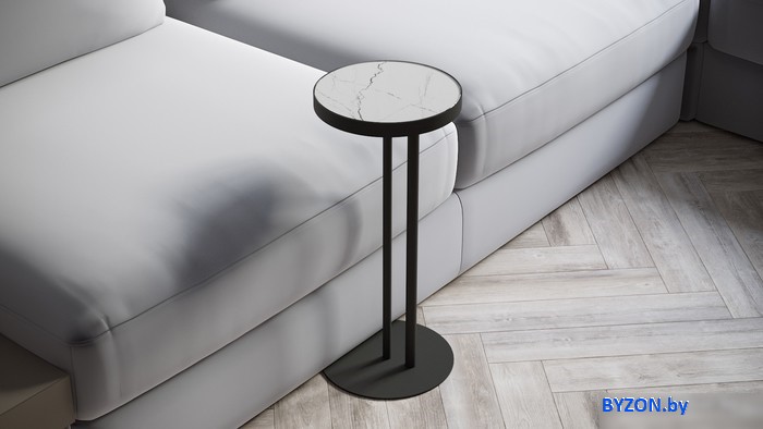| Информация | Стол журнальный «УГО» - элегантная в своей простоте модель в современном стиле. Основание и столешница соединены двумя опорами. За счет того, что они смещены к краю основания, столик можно установить вплотную с диваном или мягким креслом. Прочная конструкция столика полностью изготовлена из металла в черном цвете. Круглая столешница выполнена в стекле с УФ-печатью под мрамор. |
