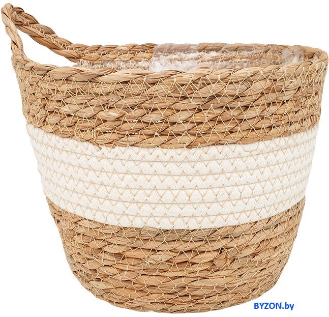 | Информация | - Плетеное кашпо идеально подходит для интерьера в стиле эко, кантри, сканди и бохо. - Внешняя часть кашпо изготовлена из натуральных материалов. - Внутри кашпо есть вкладка из полипропиленовой пленки, которая защищает плетение от плесени при поливе цветка. |