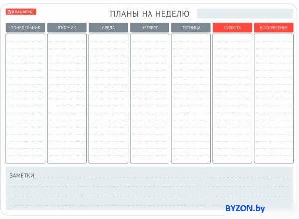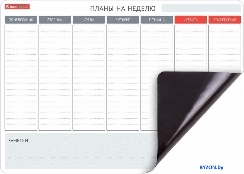 | Информация | Магнитный планинг BRAUBERG – незаменимый помощник в искусстве тайм-менеджмента. Предназначен для письма маркерами для белых досок и меловыми маркерами. Это гибкая магнитная доска, которая легко крепится к гладким металлическим поверхностям. Это идеальный инструмент для личного планирования, заметок или переписок со своими домочадцами, рисования или черчения графиков, ведения учета калорий или продуктов, необходимых для покупки. С нашим планингом вы никогда не забудете ни об одном ближайшем важном событии! Магнитный планинг имеет многоразовую поверхность «пиши-стирай», выполненную из ПВХ. В комплекте: черный маркер для белых досок с магнитом и стирателем в колпачке, салфетка из микрофибры (с «ушком» для подвешивания) и магнит специальной формы, удобной для подвешивания салфетки. Во избежание преждевременного высыхания маркер рекомендуется хранить на холодильнике, колпачком вниз. Особенности: – подходит для письма и рисования специальными маркерами для белой доски; – легко примагничивается к любой гладкой и ровной металлической поверхности. Поверхность планинга не боится воды, но избегайте попадания воды на края, во избежание расслаивания. Для очистки планинга используйте влажную салфетку. Корректируйте записи при помощи стирателя, встроенного в колпачок маркера. |