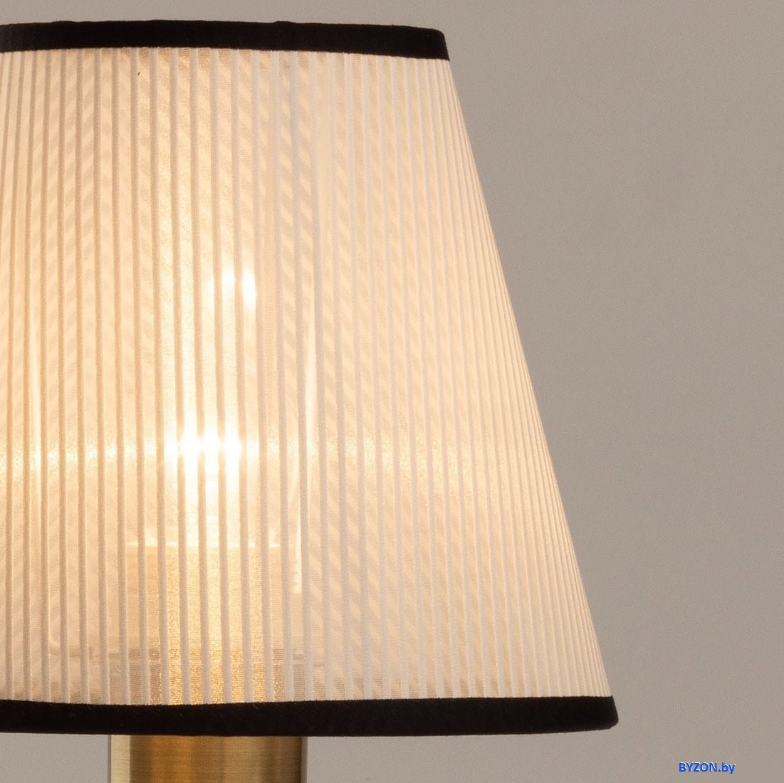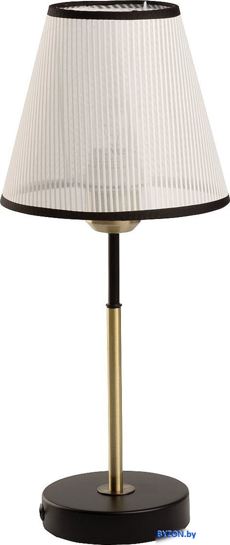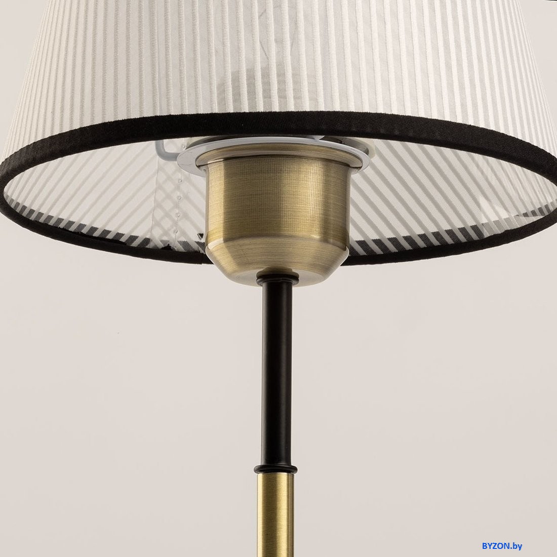 Информация | Основание настольной лампы выполнено из металла и окрашено в черный цвет, отдельные элементы гальванизированы в цвет античной бронзы. Традиционный источник света закрыт белым тканевым абажуром с линейным рисунком и имеет внутри термостойкий акрил. Края абажура отделаны черным кантом и прошиты. Сочетание цветов античной бронзы и черного выглядит изысканно и сохраняет свою актуальность. Текстильный абажур белого цвета с линейным рисунком создает мягкое освещение, внося уют в пространство комнаты. Термостойкий акрил надежно защищает текстиль абажура. Заменяемый источник света удобен и практичен в эксплуатации. |