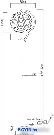 Информация | ? Лаконичный торшер в дизайнерском стиле. ? Белый плафон с волнистыми узорами. ? Основание из хромированного метала. ? Площадь освещения 3 м.кв. ? Подходит для интерьеров в современном стиле. ? Идеально подходит для спальни или гостиной. |