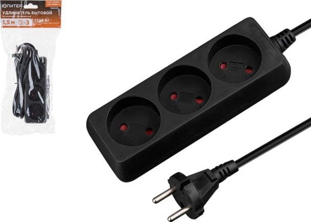 Код товара: 2831109 Рейтинг: 60 8| -60,85 удлинитель, кабель 1.5 м, 3 розетки Schuko (евро без заземления) / 2200 Вт