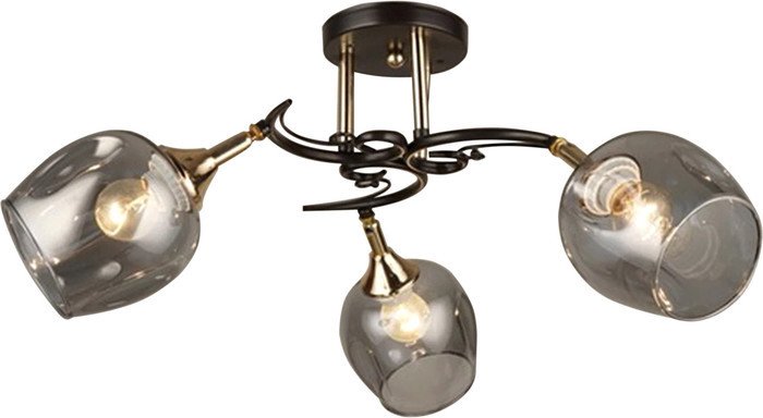 Код товара: 3176973 Рейтинг: 144 7| припотолочная люстра, плафон дымчатый (стекло), каркас черный/хром
