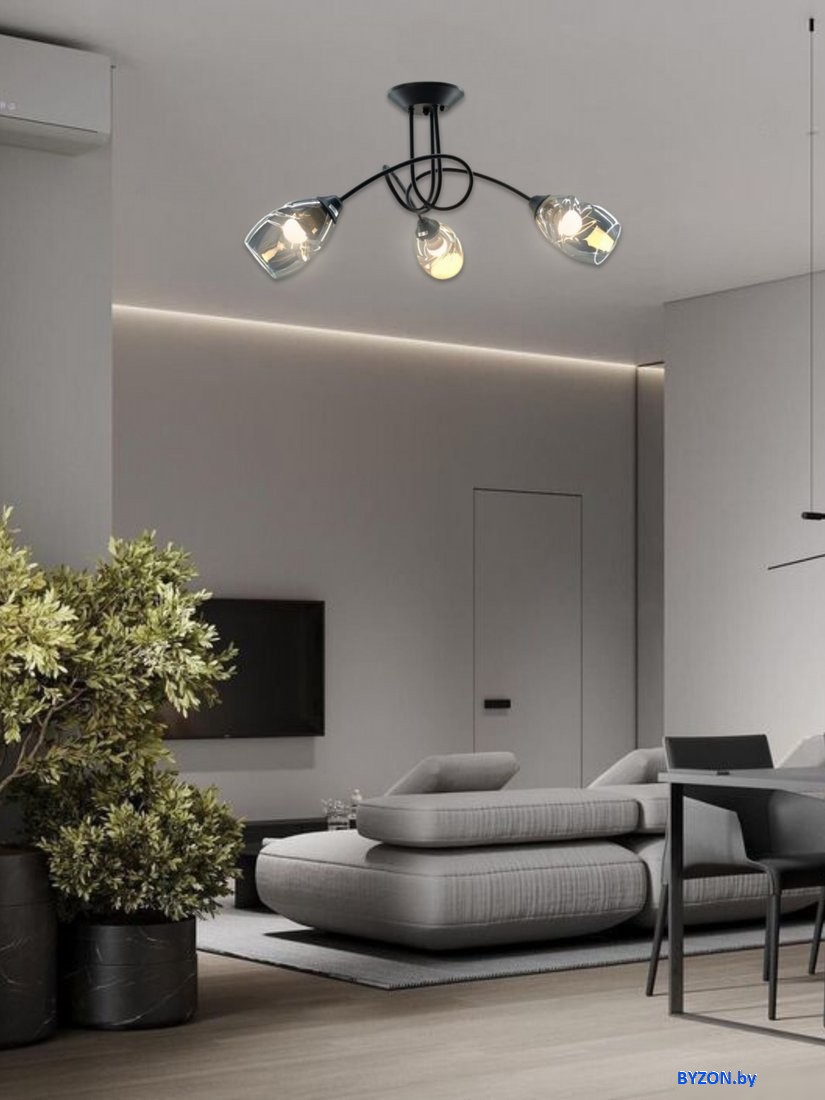 Код товара: 4543426 Рейтинг: 144 7| люстра средней высоты, плафон серый (стекло), каркас черный